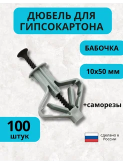 Дюбель для гипсокартона бабочка + саморезы 100 шт