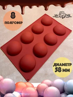 Утолщённая силиконовая форма "полусфера" 58 мм (8 ячеек)