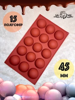Утолщённая силиконовая форма "полусфера" 45 мм (15 ячеек)