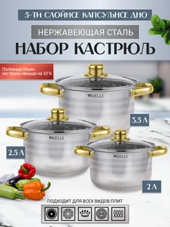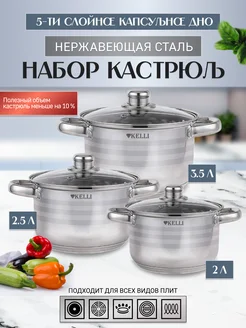 Набор кастрюль из нержавеющей стали с крышками, 3 шт