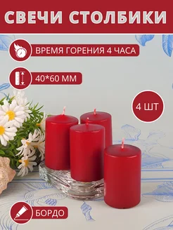 Свечи столовые полноцветные 20х200 мм бордовые 3 шт