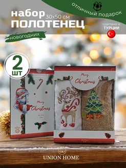 Новогодний набор кухонных подарочных полотенец коробке 2 шт