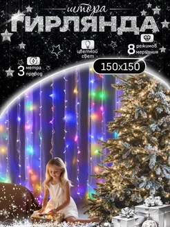 Гирлянда штора занавес Дождь 1,5х1,5 м