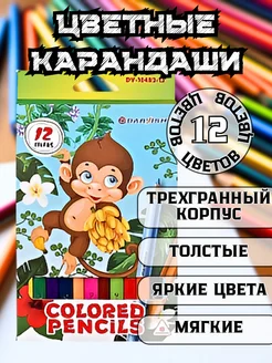 Карандаши цветные "Обезьянка" корпус трехгранный толстый
