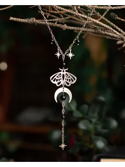 Колье-галстук "Ночной мотылёк" лунница звезда агат обсидиан
