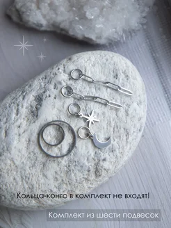 Комплект из 6 подвесок и цепочек звезда полумесяц без колец