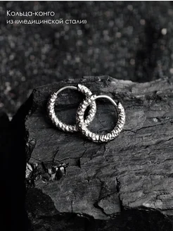 Серьги конго фактурные из нержавеющей стали 1 пара 10мм