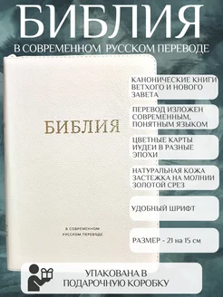 Библия. Современный русский пер. Белая, натур. кожа, молния