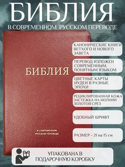 Библия. Современный русский пер. Бордовая, кожанная, молния