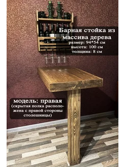 Стойка барная со скрытой полкой справа, массив дерева, стол