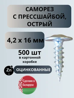 Саморезы по металлу с прессшайбой острые 4,2 х 16 мм 500шт