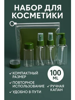 Набор дорожных флаконов 5шт + косметичка, 100 мл