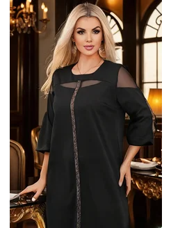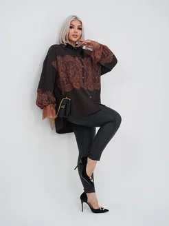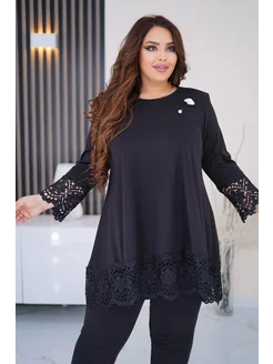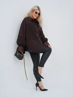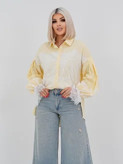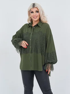 Нарядная рубашка оверсайз с кружевом больших размеров