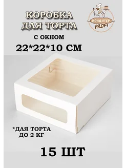 Коробка для торта с окном 22х22х10см 15шт