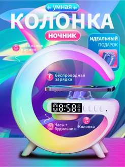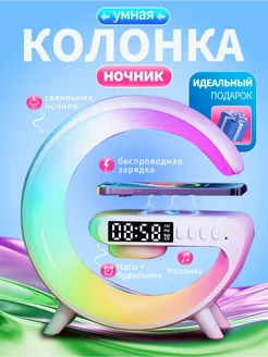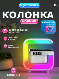 Блютуз колонка ночник с беспроводной зарядкой и подсветкой