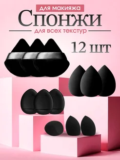 Набор спонжей для макияжа лица и пуховки для пудры. 12 шт
