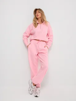 Костюм спортивный розовый с худи полузамок y2k