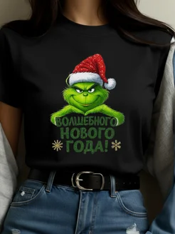 Футболка оверсайз с принтом новогодняя хлопок гринч