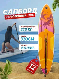 Сапборд надувной двухслойный для плавания с веслом и насосом