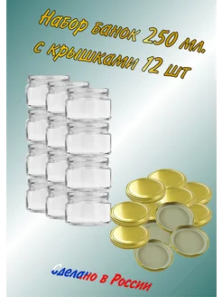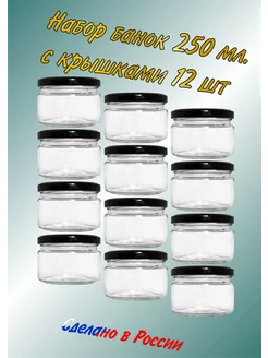 Набор стеклянных банок 250 мл с крышкой 12 шт
