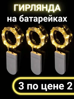 Гирлянда на батарейках новогодняя светодиодная 1 м 3 шт
