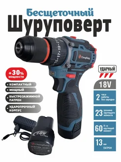 Дрель-шуруповерт ударный аккумуляторный бесщеточный 18v
