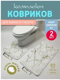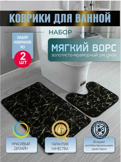 Комплект ковриков для ванной и туалета мрамор черный золото