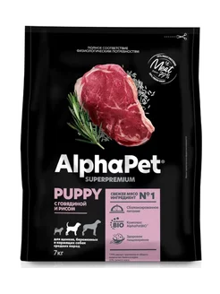 Сухой корм для щенков средних пород, говядина и рис 7 кг