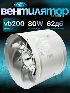 Вентилятор вытяжной 200С воздухообмен 400м3 ч 21Вт