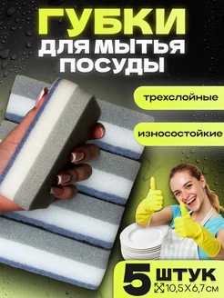 Губки для посуды целлюлозные прессованные белые 5 штук