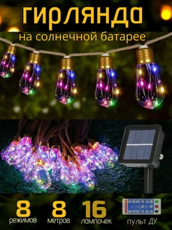 Гирлянда на солнечной батарее цветная 8 метров Ретро