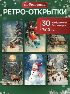 Новогодние мини открытки ретро для подарка на новый год 2026