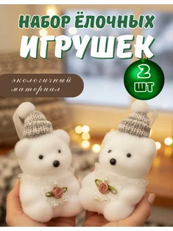 Елочная игрушка Мишка в шапке, 2 шт, декор для дома, набор