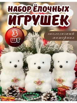 Елочная игрушка Мишка с розой, 3 шт, декор для дома, набор
