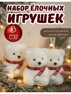 Елочная игрушка Мишка с шарфом, 3 шт, декор для дома, набор