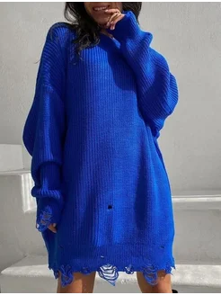 Платье туника вязаный тёплый рваный длинный свитер оверсайз