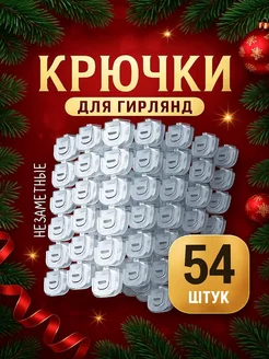 Крючки для гирлянд самоклеящиеся прозрачные держатели 54шт