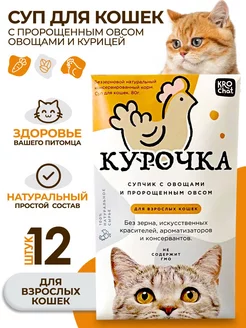 Суп для кошек, влажный корм KROChat с курицей 80г, 12 шт