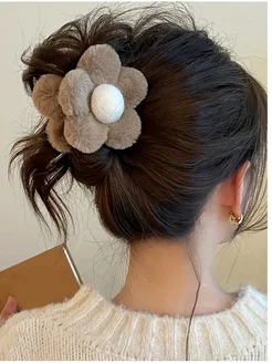 Крабик для волос цветок меховой заколка для зимы