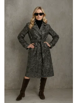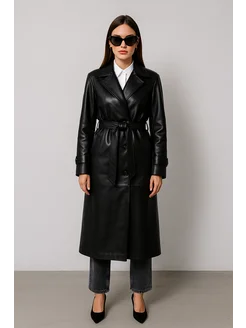Тренч из эко-кожи удлиненный прямой силуэт пояс съемный