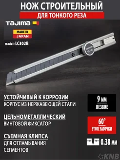 Нож LC302B 9 мм, из нержавеющей стали, винтовой фиксатор