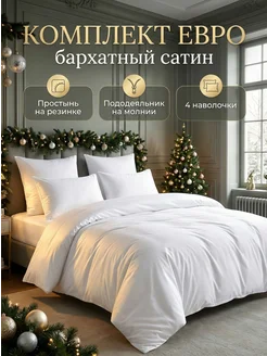 Постельное белье евро на резинке сатин