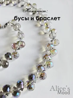 Бусы и браслет дымчатый-мистик из чешского хрусталя