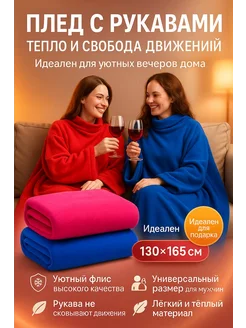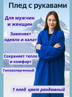 Плед-одеяло с рукавами флисовый тёплый халат для дома