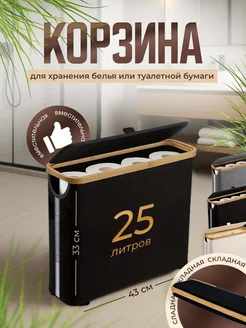 Корзина для белья вещей и туалетной бумаги узкая с крышкой