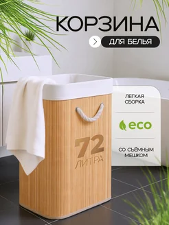 Корзина для грязного белья в ванную с крышкой из бамбука