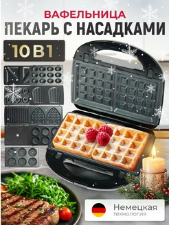 Пекарь с насадками 10в1 вафельница орешница электрическая