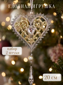 Елочные игрушки Сердце 12 см. набор 2 шт, серия "золотая"