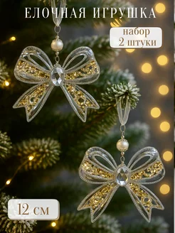 Елочные игрушки Бантики 12см, набор 2 шт, серия "золотая"