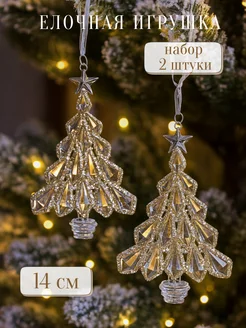 Елочные игрушки Елочка 14 см, набор 2 шт. "розовое золото"